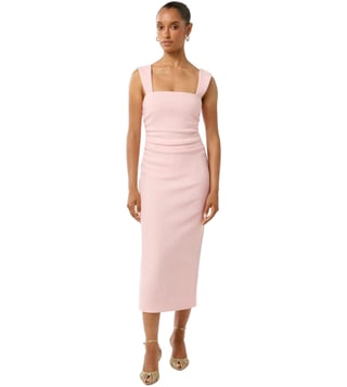 Get ready to be overwhelmed with a flurry of compliments by wearing this ballet slipper fitted dress from Forever New. Tailored to sartorial perfection from premium quality fabric, it assures a soft and soothing touch against the skin. The square neck magnifies its overall appeal. Flaunting stylish shoulder straps, it will surely keep you updated with the latest trend.