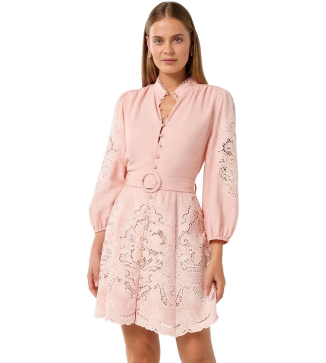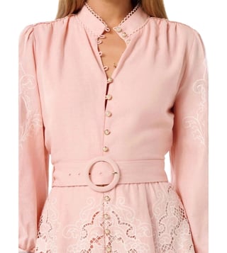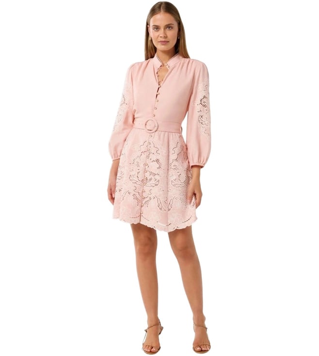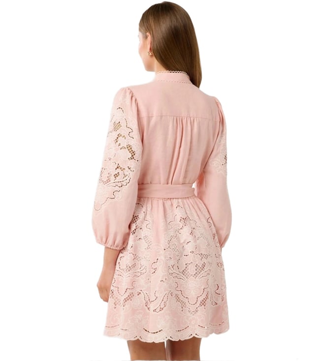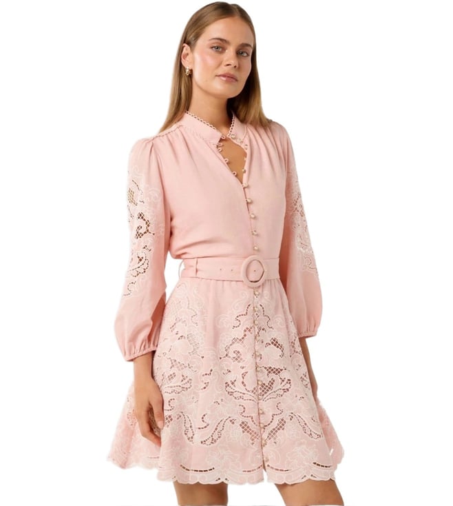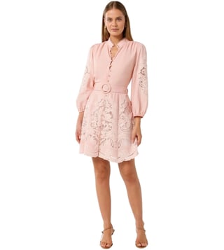 Induce a dash of style to your wardrobe with this pink regular fit dress from Forever New. Tailored to sartorial perfection from premium quality fabric, it assures a soft and soothing touch against the skin. The band neck adds to its appeal. Exuding full sleeves, it is sure to fetch you compliments from all. The embroidery work speaks for its ornate artistry.