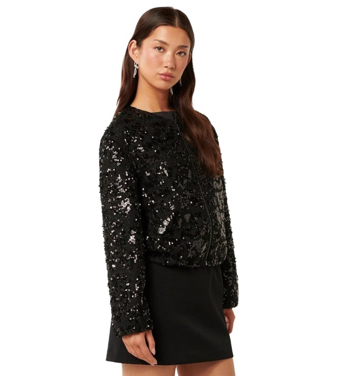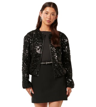 Elevate your party look with the Forever New Black Blended Regular Fit Jacket for women. Perfect for club wear, this stylish jacket adds a touch of sophistication to any outFit. Disclaimer: All other items in the image are only for display purposes and will not be a part of the delivery content. Product colour may slightly vary due to photographic lighting sources. Country of Origin - India.