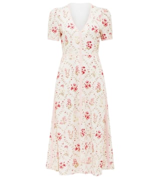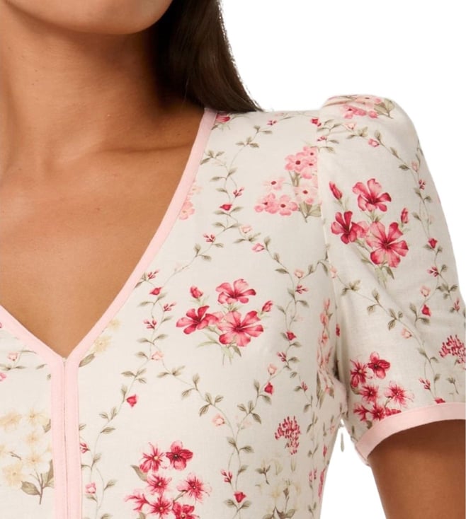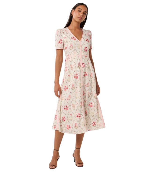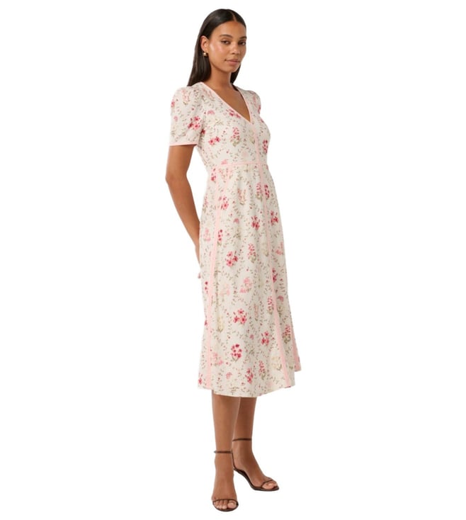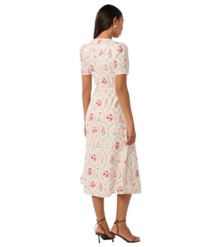 Rekindle your style quotient by wearing this garden trellis regular fit dress from Forever New. Tailored to sartorial perfection from premium quality fabric, it assures a soft and soothing touch against the skin. The V-neckline adds to its appeal. Exuding short sleeves, it is sure to fetch you compliments from all. The floral print makes it a bewitching choice.