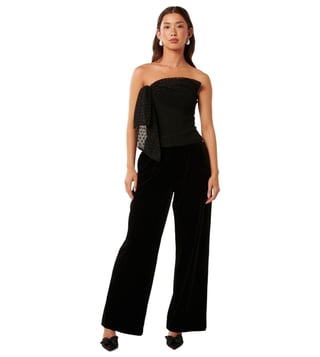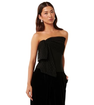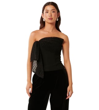 A sleek silhouette in timeless black, this fitted tube top is the epitome of effortless chic. Crafted from smooth, luxurious polyester, it drapes flawlessly against your curves, accentuating your natural shape. The sleeveless design offers a cool and comfortable feel, perfect for warm days or stylish evenings. Its solid pattern and minimalist design make it a versatile piece that can be dressed up or down, making it a must-have for any fashion-forward woman's wardrobe.