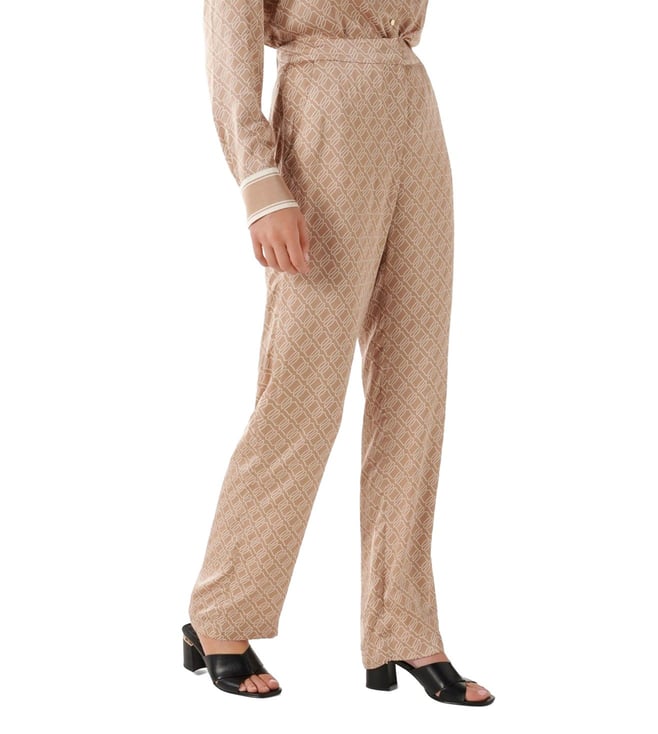 Give your regular look a stylish makeover with these beige and white pants from Forever New. These smart high rise pants features a charming regular fit. printed pattern Made from viscose fabric, they will become one of your favorites this season. You can team them with a shirt to complete your look.