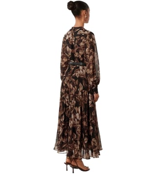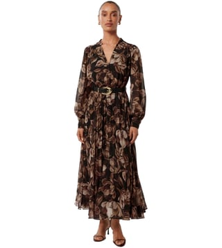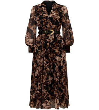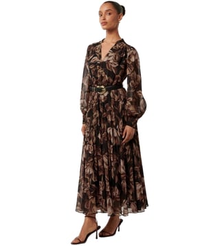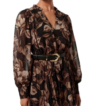Add zest and zing to your look by wearing this multicolored dress with belt from Forever New. Tailored to sartorial perfection from premium quality fabric, it assures a soft and soothing touch against the skin. The V-neckline adds to its appeal. Exuding full sleeves, it is sure to fetch you compliments from all. The floral print makes it a bewitching choice.