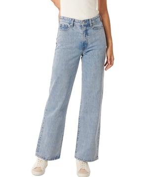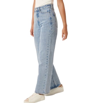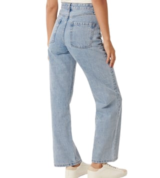 Be prepared to give out some sassy tips on style and flair when you move around in this cool pair of light blue jeans from the house of the iconic Forever New. Masterfully crafted in premium cotton for luxurious flexibility and softness for a second-skin feel backed by excellent comfort, their modern regular fit with a high-rise silhouette gives them a unique fashion edge. Pair them with a tank top and sneakers for a diva look.