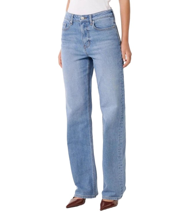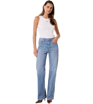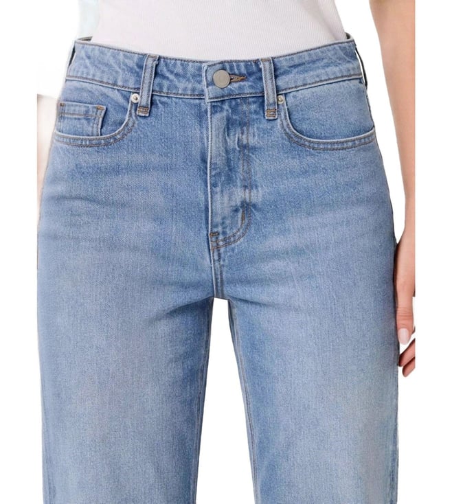 Take a fashion-forward stance by wearing this pair of light wash straight fit jeans from Forever New. Tailored to sartorial perfection from premium quality fabric, it assures a soft and soothing touch against the skin.