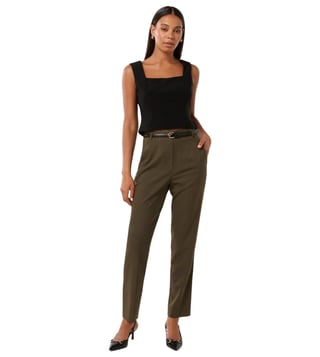 Embrace effortless style with these sleek, slim-fit pants. Crafted from a luxuriously soft blended fabric, they drape beautifully and move with you. The vibrant green hue adds a pop of color to any outfit, while the flattering slim fit accentuates your curves. The included belt allows for a customized fit and adds a touch of sophistication. Perfect for everything from casual outings to evening events, these pants are a versatile wardrobe essential.