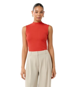 Give your casual wardrobe a stylish lift with this red top from Forever New. Fashioned using viscose, this regular fit top will not fail to catch your fancy at a single glance. Featuring a turtle neck and solid pattern, this top holds an elegant appeal. Team this top with a pair of distressed jeans and matching strappy sandals for a cool casual look.