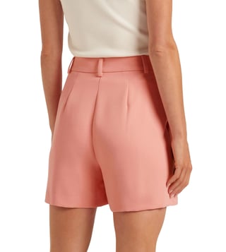 Celebrate sunny outings in the new season with this awesome pair of peach shorts from the latest offering of Forever New. Masterfully tailored with a regular fit and a high-rise silhouette for a hot, relaxed look, their premium polyester construction offers feather-like softness and unmatched comfort. Pair them with sneakers and a contrast top for a striking look.