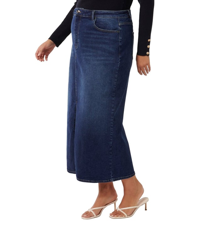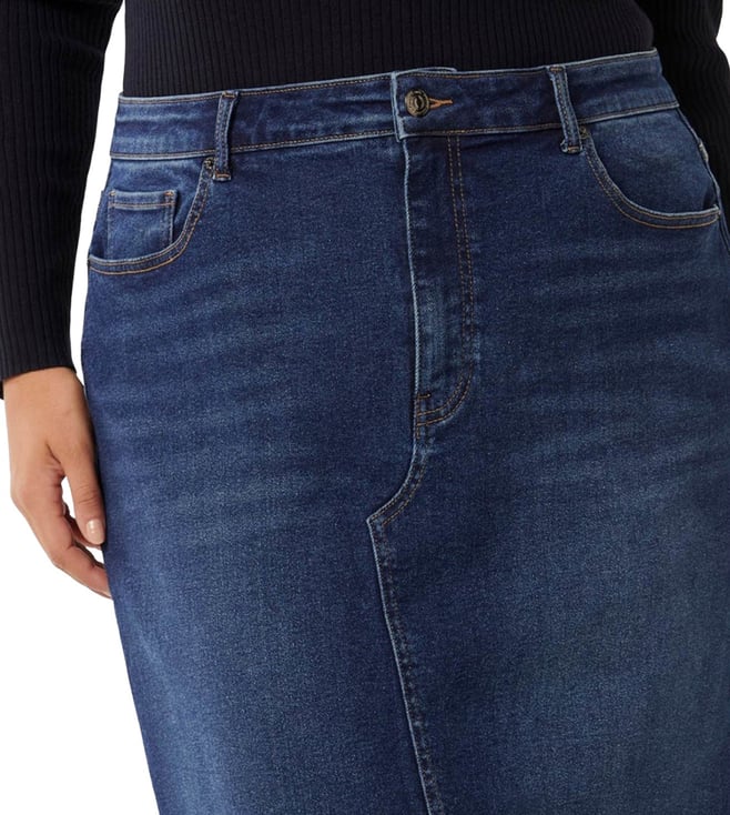 Spring up a stylish surprise in your circles with this awesome blue denim skirt from the latest collection of Forever New. Finely crafted in prime quality stretch poly cotton for luxurious smoothness packed with fine sheen and superb drape, it's modern color-block pattern makes it a just companion for many a combination. Pair it with a print top to enliven the evening.