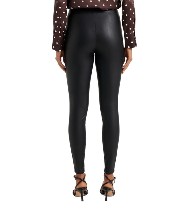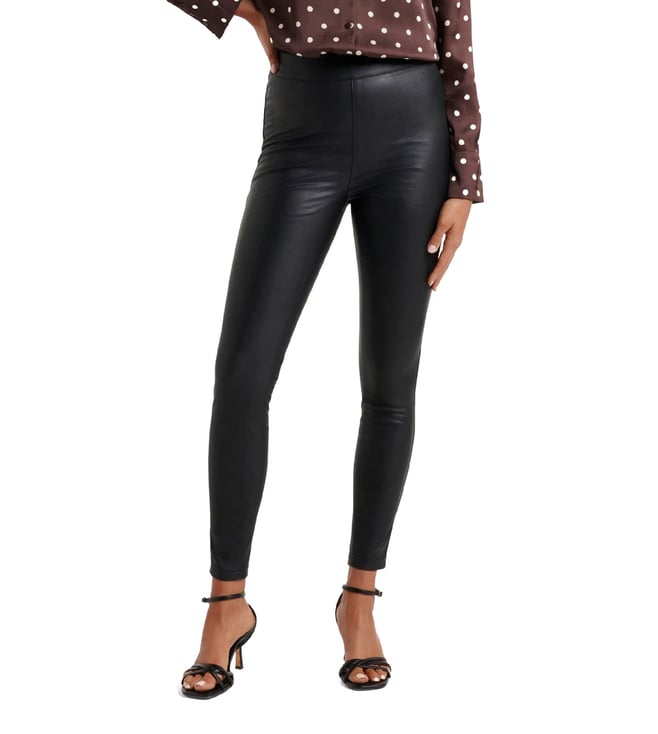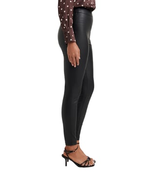 Be prepared to give out some sassy tips on style and flair when you step out in this cool pair of black jeggings from the house of the iconic Forever New. Masterfully crafted in premium stretch polyester with PU coating for luxurious flexibility and sheen backed by excellent comfort, their classic regular fit with a high-rise silhouette gives them a unique fashion edge. Pair them with a tank top and sneakers for a diva look.