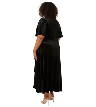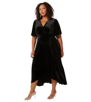 Embrace elegance with this luxurious velvet wrap dress, crafted with a minimum of 50% recycled polyester. Its flattering V-neckline, wrap-style bodice, and breezy midi skirt create a feminine silhouette perfect for any formal occasion. The short flutter sleeves add a touch of whimsy, while the concealed zip and lining ensure a polished finish. Available in a regular fit, this dress is designed to drape beautifully, making you feel confident and stylish.
