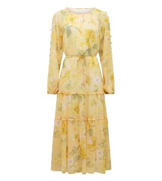 Elevate your wardrobe with the Forever New Gold Layla Botanica Wendy Waist Tie Floral Midi A-Line Dress. This stunning dress seamlessly blends elegance and comfort, featuring a flattering waist tie detail and a regular fit that accentuates your silhouette. The vibrant floral print adds a touch of femininity, making it perfect for any occasion. Whether you are attending a garden party or a special event, this dress is sure to turn heads and make you feel confident and stylish. Upgrade your look with this timeless piece that effortlessly combines sophistication and charm.