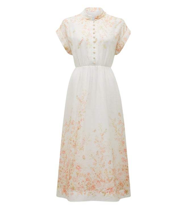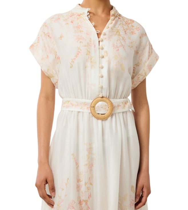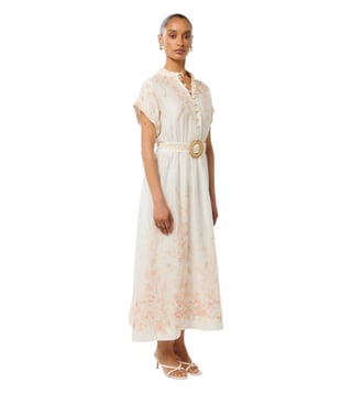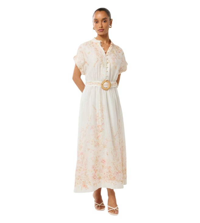 Forever New White Mollie Petite Floral Regular Fit Belted Midi Dress