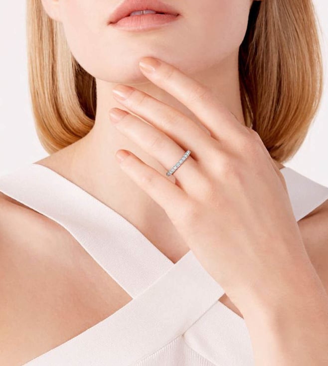 Pure, pristine, and profoundly elegant the Signature Full Eternity Band celebrates the full-circle symbolism of love and continuity. Set with a seamless line of round Forevermark diamonds, the ring glows with a sense of completeness that's both symbolic and sensual. Each stone is a point of light, catching reflections as the band turns gracefully echoing moments lived and memories yet to be made. It's