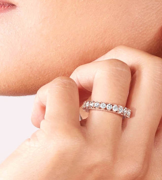Some bonds are quiet but unshakable - and here's a ring for bonds just like these. The Circle of Trust Diamond Band is a refined expression of connection that runs deep, available in 18k white, yellow, or rose gold. A slim gold band holds a beautifully glittering row of 21 round Forevermark diamonds, precisely set and intentionally placed. It¿s a whisper of a promise, a symbol of reliability that doesn¿t need embellishment.