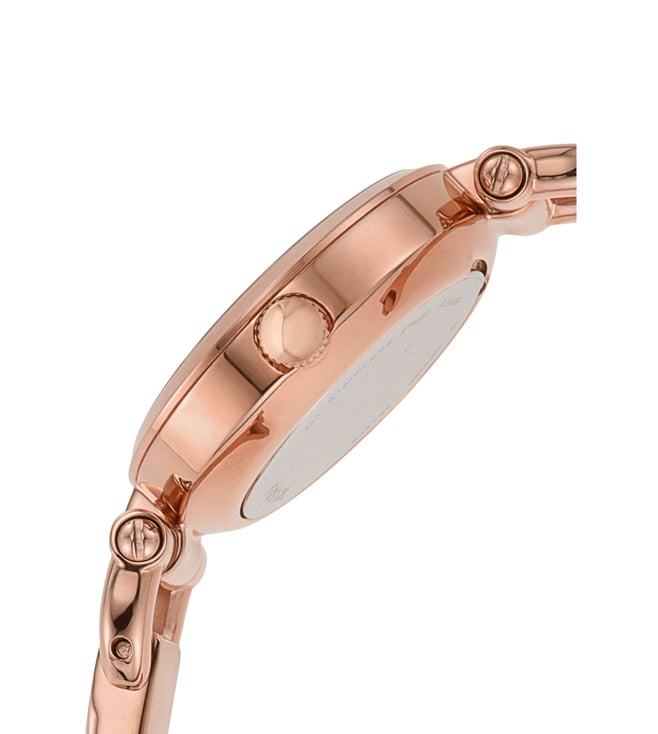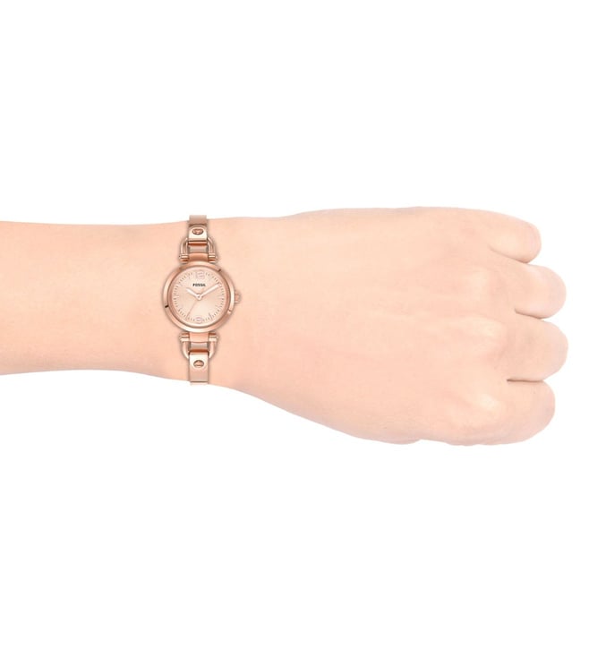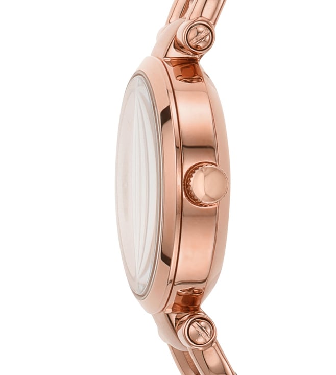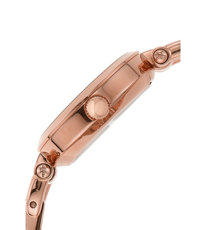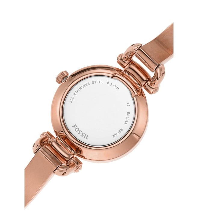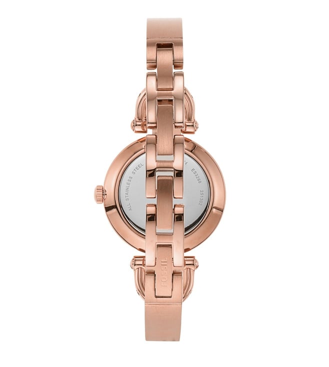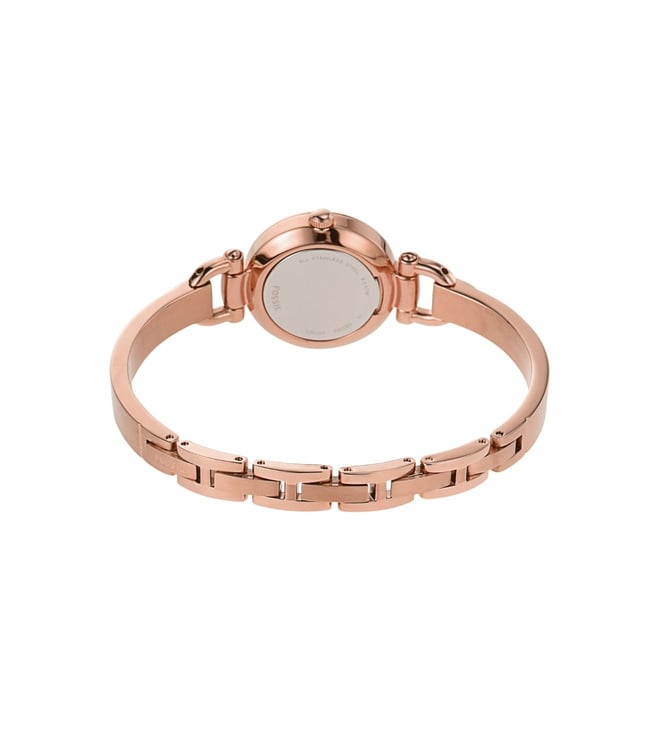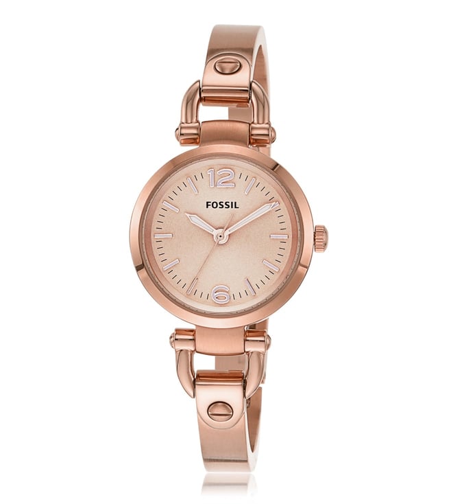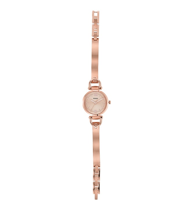 This royal gold watch for women by Fossil is the perfect choice for the diva in you. With its rose gold dial and three hand analog movement, this watch is perfectly encased in a stainless steel case that is made of hard-wearing materials that would last long. This beauty is no less than jewellery and would definitely make for a great statement piece.