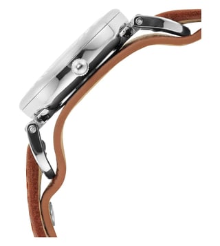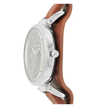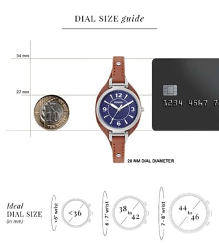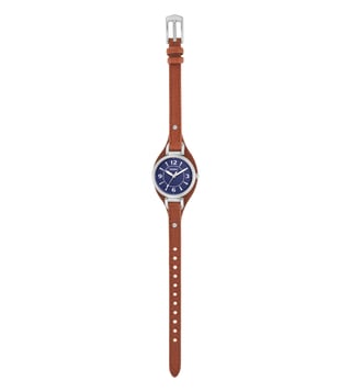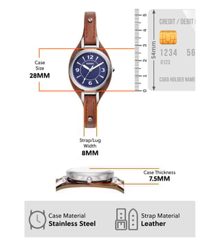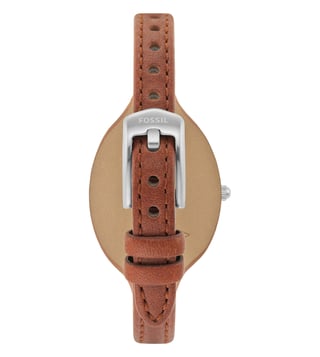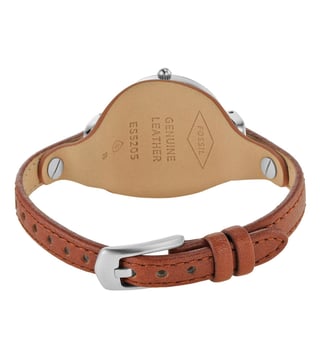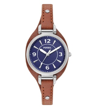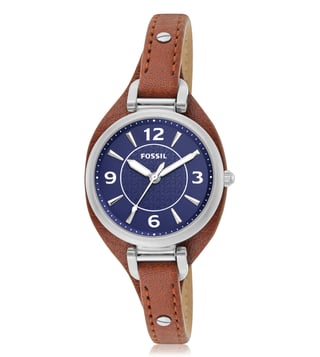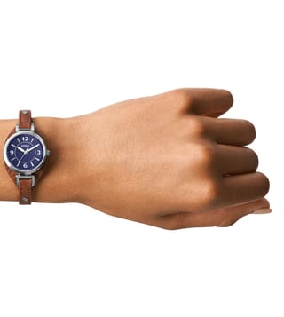 Make a distinct style statement wearing this womens analog watch from FOSSIL. The blue round dial is protected by a mineral glass. The genuine leather strap comes in a brown hue that further elevates the look of the timekeeper. Besides, it is completed with a buckle clasp to ensure a secure fit on the wrist.