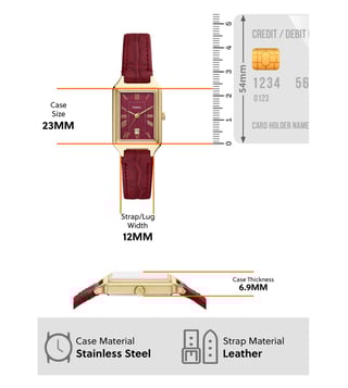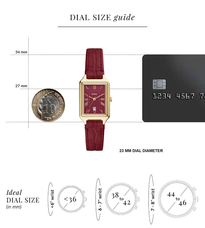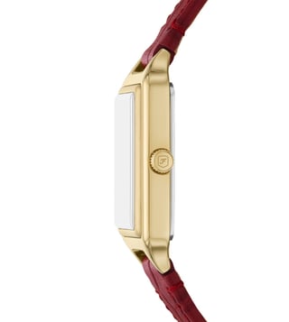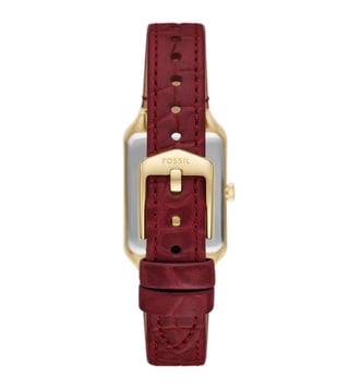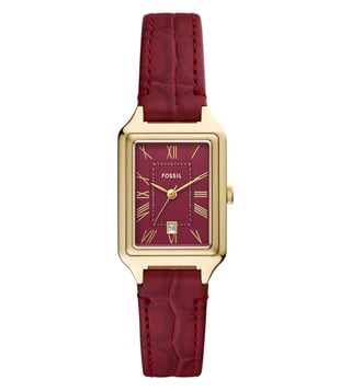 An icon from our archive, the rectangular Raquel watch is updated with stunning details. Slim and versatile, it features a red satin dial with a gold-tone case, three-hand date movement and a red genuine leather crocodile-embossed strap. Fossil leather products support responsible manufacturing via the Leather Working Group.if you are looking for a refined look. Known for its distinctive pattern, this timepiece stands out. With a stunning design and charming looks, this is an exquisite wristwatch made for Every one.