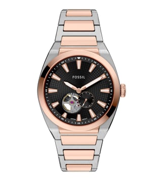 Exuding effortless style, the Everett automatic. This sporty rose gold tone and stainless steel two-tone watch balances casual cool with refined sophistication. The sunray black open heart dial, encased in a 42mm round stainless steel case, lends a touch of modern inspiration. Powered by automatic movement, visible through the dial and display caseback. This watch keeps time without a battery and highlights intricate mechanics through its design. Slip on this iconic accessory and take on whatever comes your way.