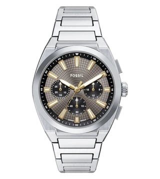 Exuding effortless style, the Everett Chronograph. This sporty, stainless watch balances casual cool with refined sophistication. The sunray gray dial, encased in a 44mm round stainless steel case, lends a touch of modern inspiration. Functional details like Japanese chronograph quartz movement and a solid steel bracelet ensure this versatile timepiece keeps you on schedule. Slip on this iconic accessory and take on whatever comes your way.