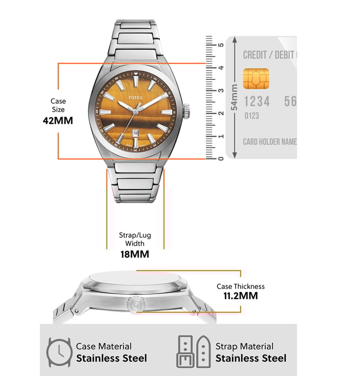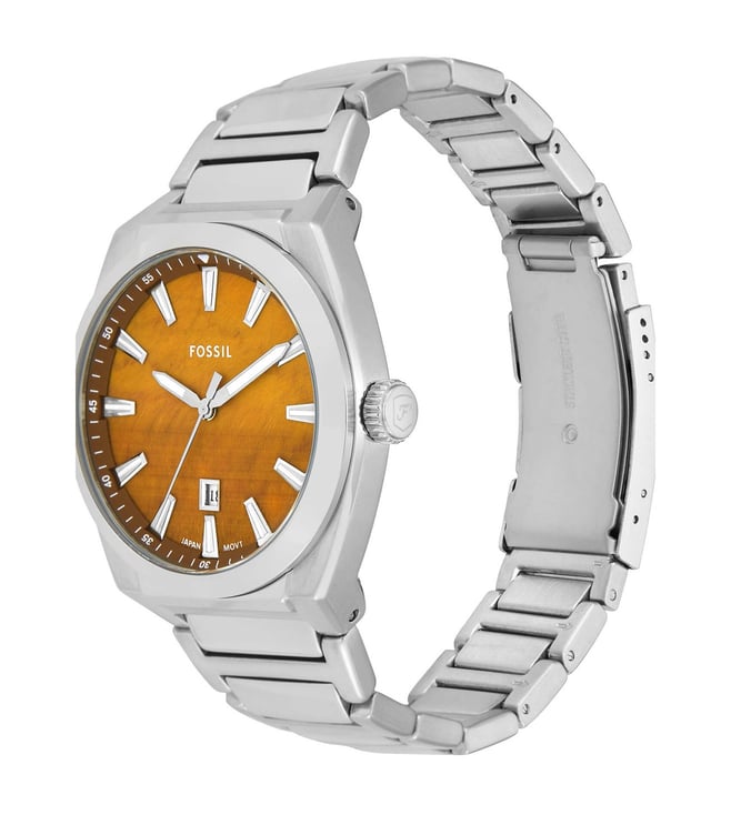 Featuring seasonal on-trend colors, the sporty Everett watch is perfect for the bold. It boasts a stainless steel H-link bracelet and a genuine tiger's eye stone dial with striking indices, making it a standout accessory for any outfit.