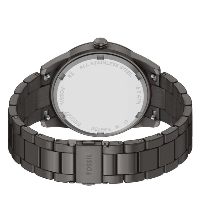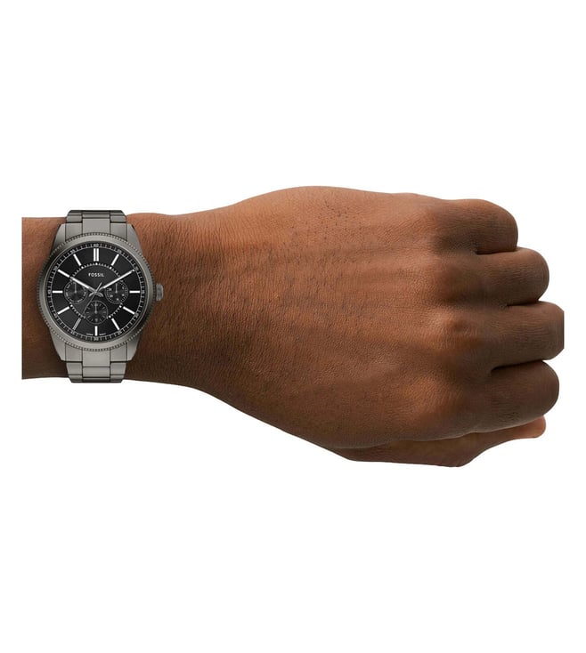 A gunmetal-tone stainless steel bracelet and case create a sleek, monochromatic look in this multifunction watch. The black dial features a sunray finish for added depth, complemented by practical sub-dials for day, date, and 24-hour functionality. Designed with thoughtful precision, the round case pairs seamlessly with the minimalist bracelet, delivering clean lines and versatile styling.