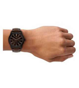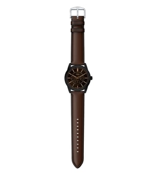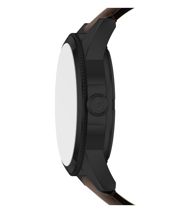 A black stainless steel case pairs seamlessly with a rich brown leather strap for a refined yet approachable look. The black sunray dial under an amber crystal, adds subtle depth and texture, complemented by practical sub-dials for day, date, and 24-hour functionality. The round case design balances modern versatility with thoughtful craftsmanship, creating a reliable timepiece designed for daily wear.