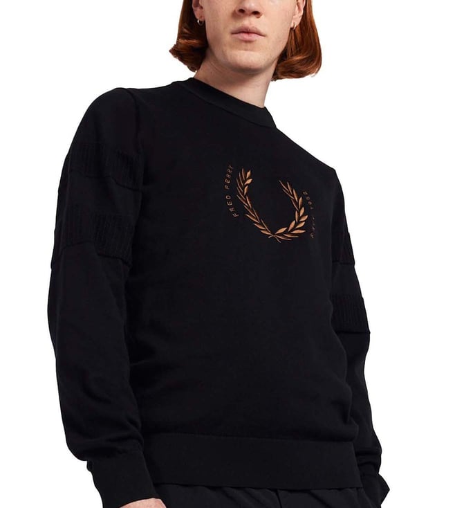 Men Black Embroidered Big Laurel Wreath Sweatshirt