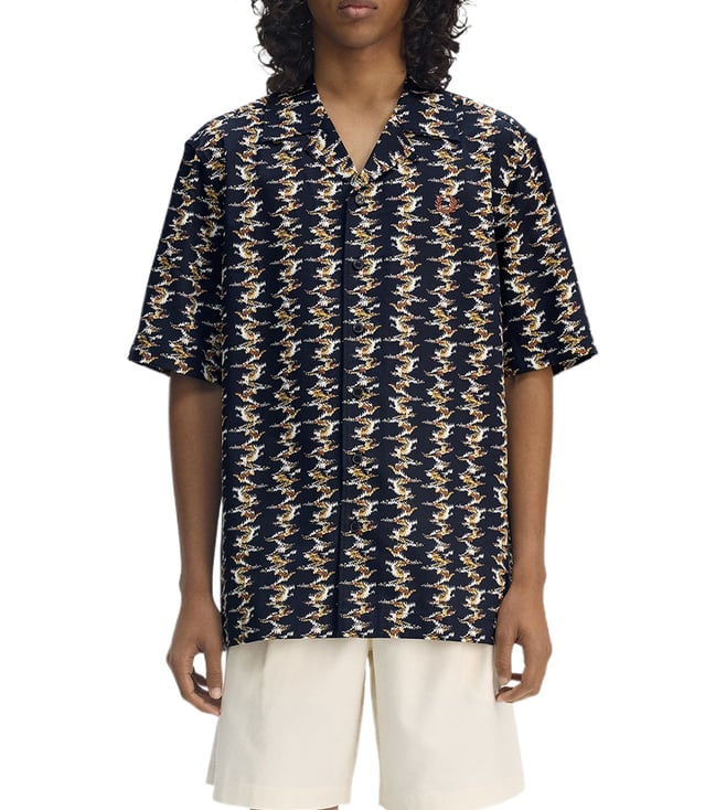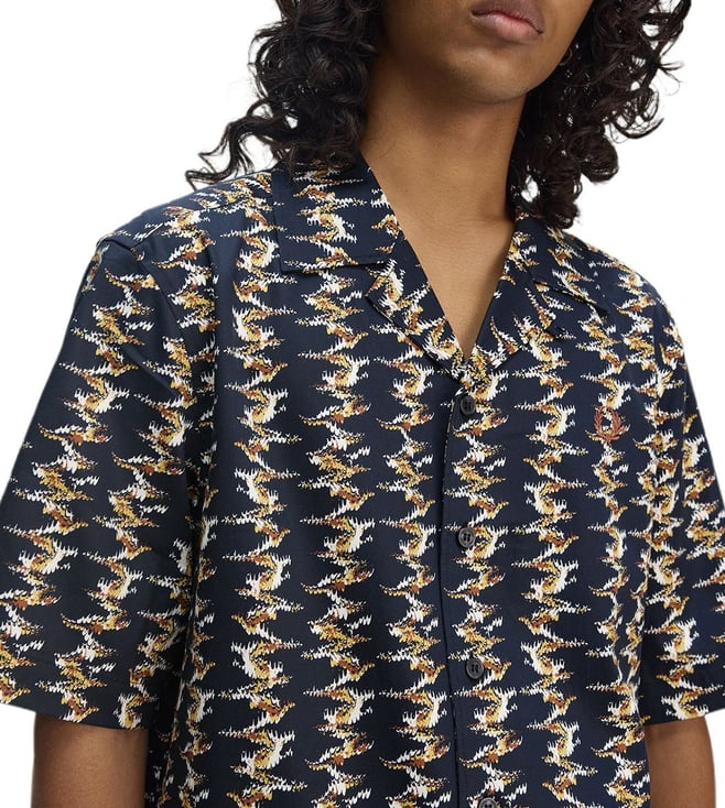 Fred Perry Navy Textured Regular Fit Casual Shirts