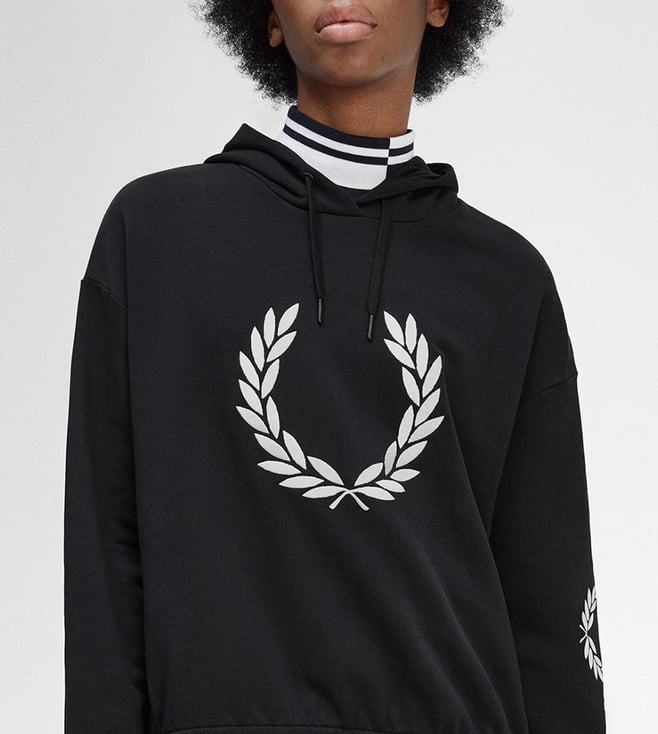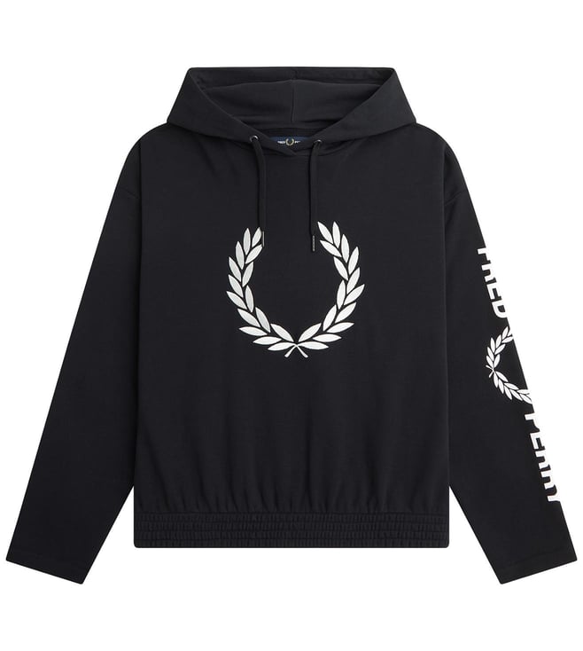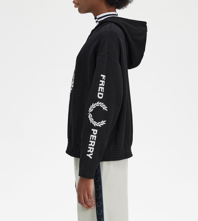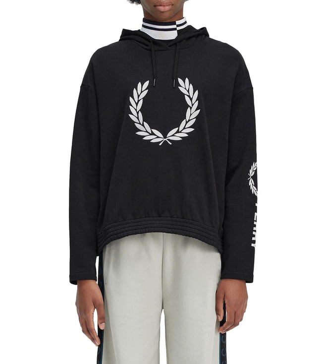 Fred Perry Women Black Graphic Laurel Wreath Hooded Sweatshirt