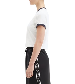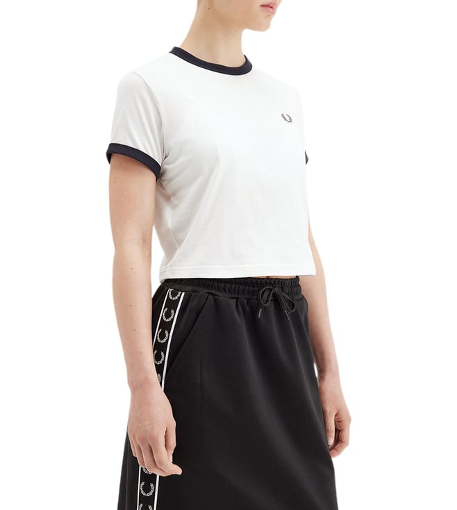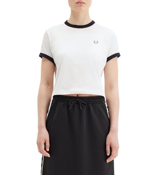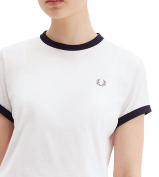 Elevate your casual wardrobe with the Fred Perry Women White Ringer Regular fit T-Shirt. This timeless classic features a flattering regular fit and a stylish ringer design that adds a touch of retro flair to any outfit. Made from high-quality materials, this t-shirt is not only comfortable to wear but also durable for long-lasting use. Whether you're dressing it up with a blazer or keeping it casual with jeans, this versatile piece is a must-have for any fashion-forward woman. Upgrade your style with the Fred Perry Women White Ringer T-Shirt today!