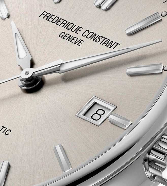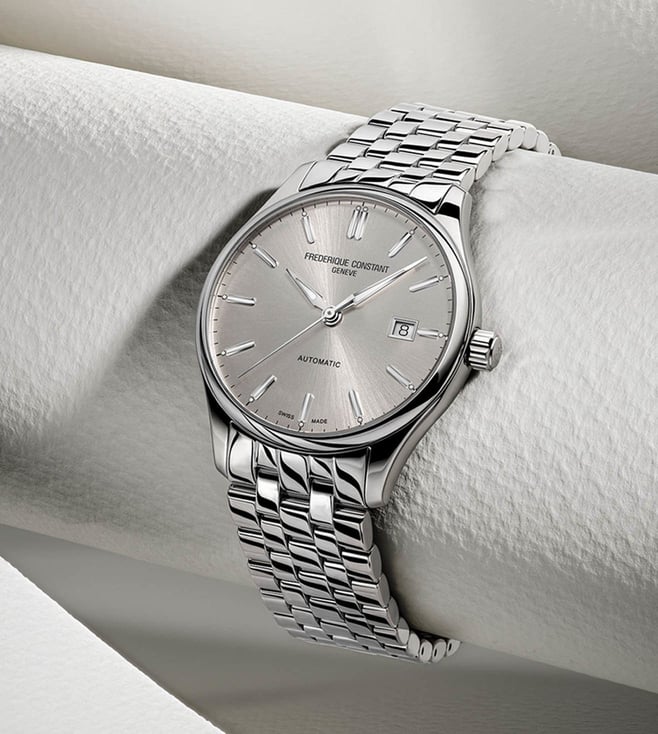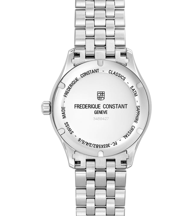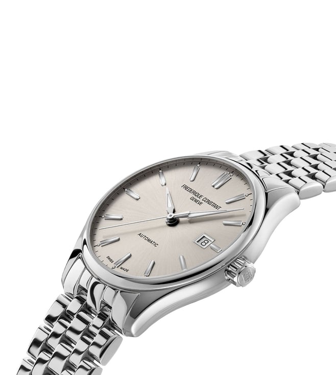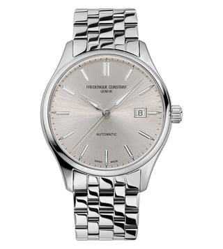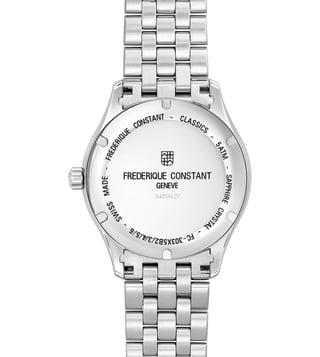 Designed to suit the preference of urban men, this analog watch from the collection by Frederique Constant is sure to make a style statement. Secured by a mineral crystal, the silver round dial is protected in a case. It exhibits crown for time adjustment. The steel strap flaunts a silver hue that accentuates the look of the watch. Moreover, it is fitted with a deployment clasp with push button clasp to ensure a secure fit on the wrist.