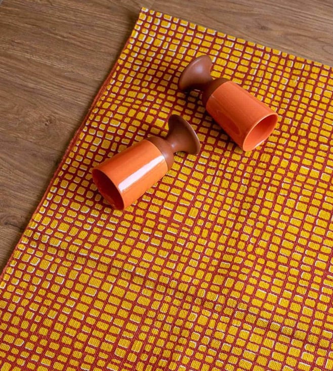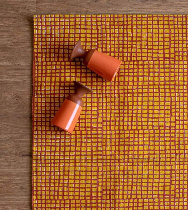 Vibrant red lines intersect on an orange ground to create a characterful gridded design. The Grille Printed Rug rug animates whichever area it¿s placed in - whether that¿s by the side of your bed or at the foot of your favorite easy chair.