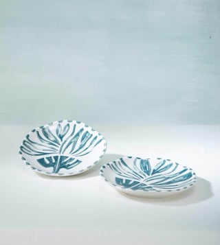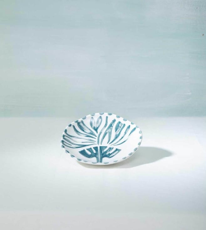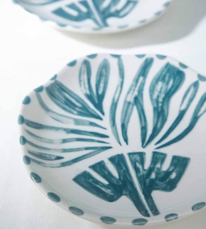 Montane Bush Hand Painted Ceramic White And Blue Small Plate - Set Of 2