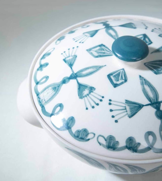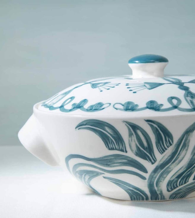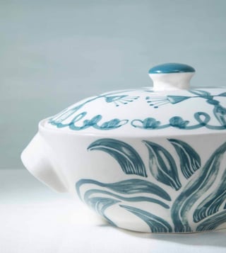 The Montane Lidded Tureen is a handcrafted ceramic piece, adorned with symmetrical hand-painted motifs of deciduous and rainforest flora and foliage. It is the perfect lidded ware for soups, stews, and casseroles, the centrepiece of your dinner service.