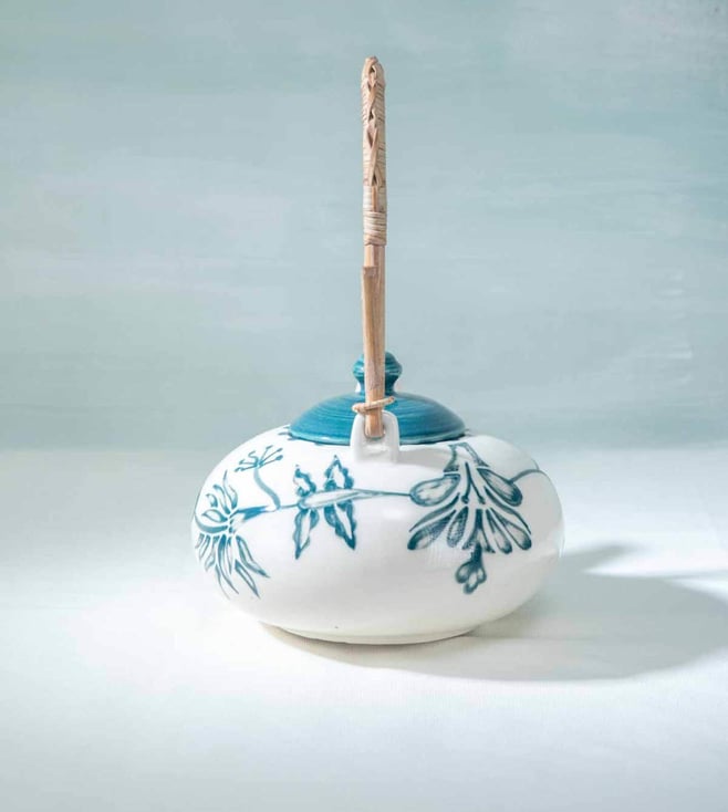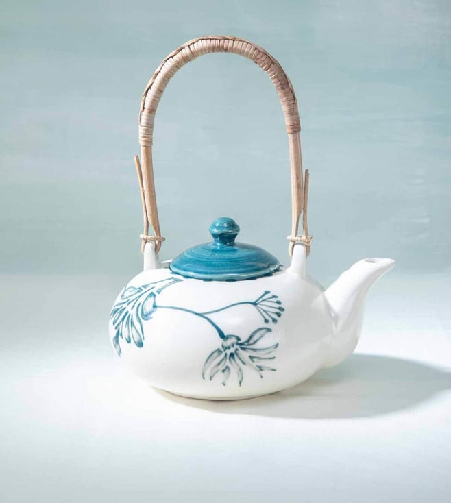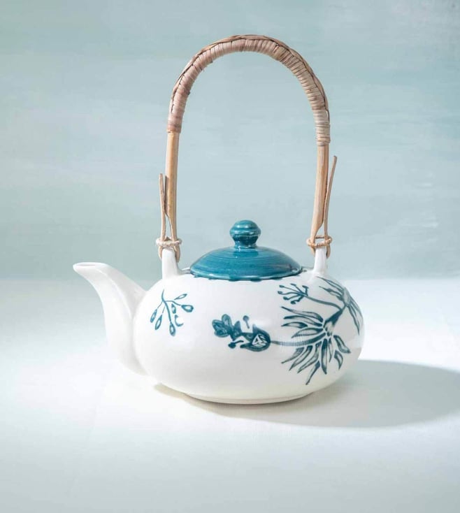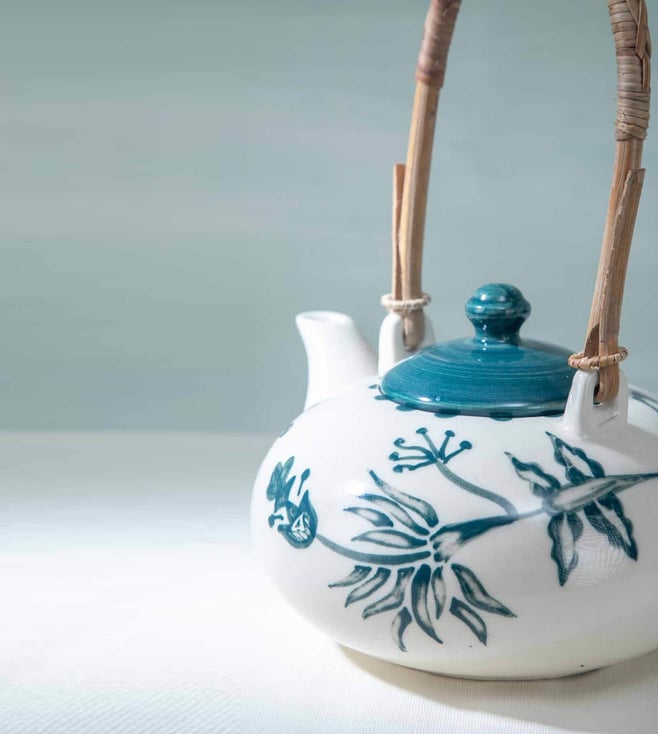 Bring in the perfect brew every morning with the Montane Tea Pot, featuring hand-painted deciduous plant motifs. The bamboo handle adds character and the solid teal lid has a bright accent. It perfectly pairs with our Montane cup and saucer set to make every morning routine memorable.