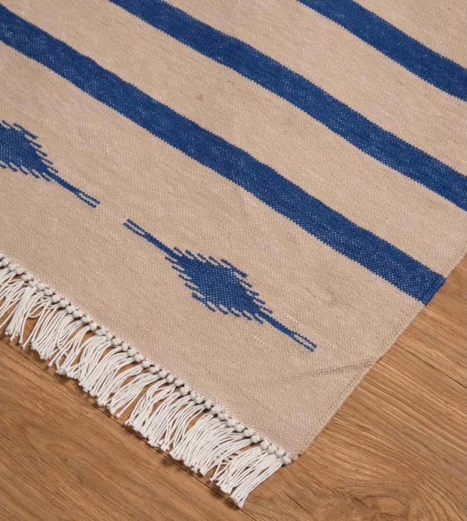 Freedom Tree Scandi Stripe Pure Cotton Blue Woven Rug