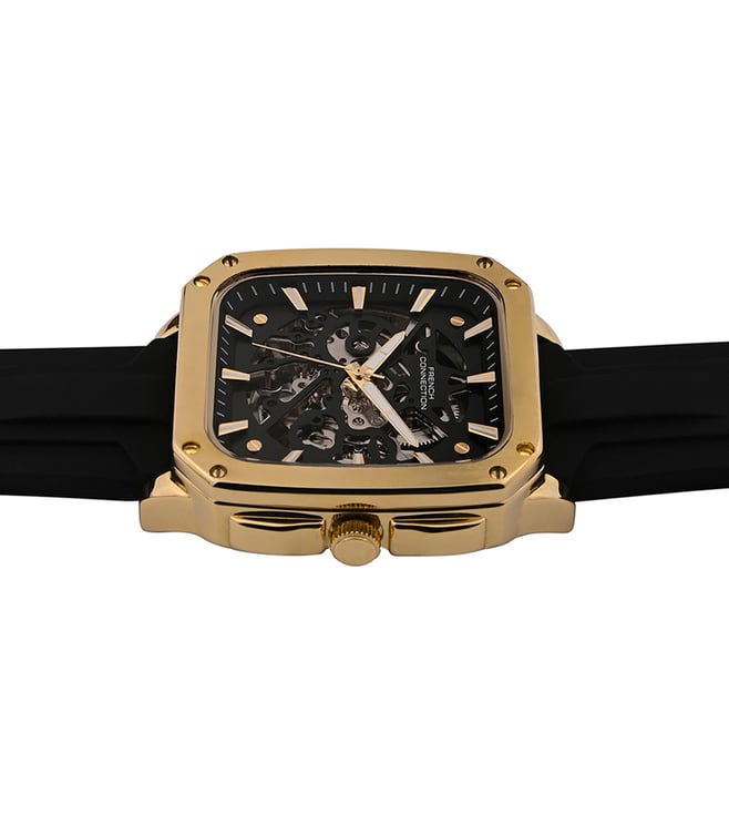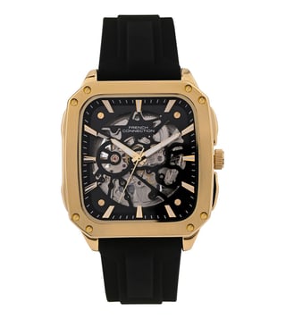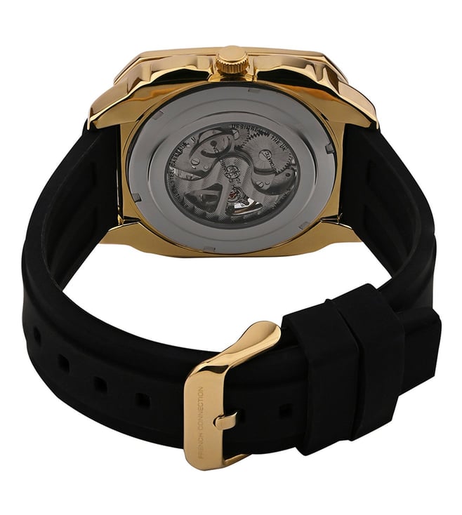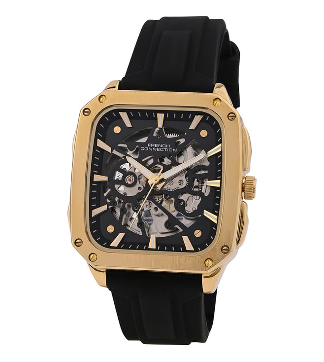 Elevate your style with the French Connection Siloflex Automatic Mens Watch. This sleek timepiece boasts a 44mm case size, perfect for the modern man. The automatic movement ensures precision timekeeping, while the striking black dial and stainless steel bracelet exude sophistication. Whether you are heading to the office or a night out, this watch will effortlessly elevate your look. Stay on-trend and on time with the French Connection Siloflex Automatic Men 44mm FCA18BL.