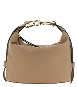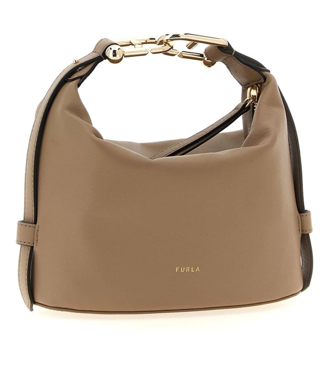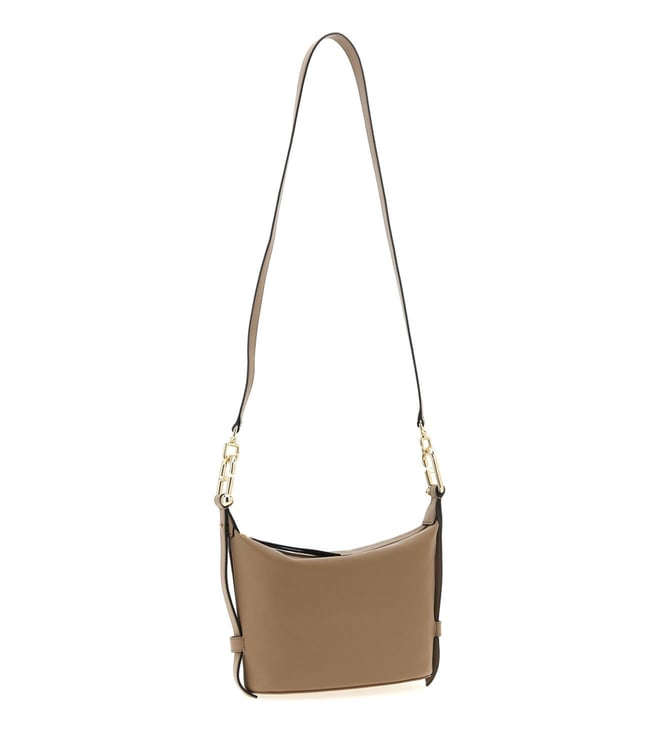 Beige Nuvola Mini Handbag, zip closure, 1 compartment, inside slip pocket, back logo, solid, crossbody strap. With its timeless design and practical features, this bag is a must-have accessory for the modern woman on-the-go.