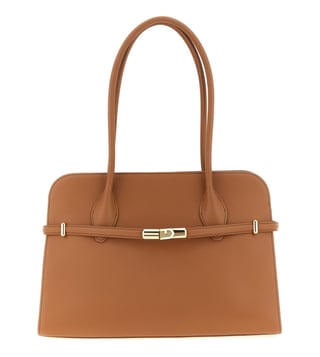 Brown Goccia Shoulder Bag zip closure, 1 compartment, inside zip pocket, solid, back logo, dual carry shoulder strap. With its timeless design and practical features, this bag is a must-have accessory for the modern woman on-the-go. Products purchased from Darveys are supported exclusively by the warranty/exchange policies of Darveys and its partner boutiques. Brand owners and their channel partners are not responsible for exchange/warranty services for items purchased through Darveys.