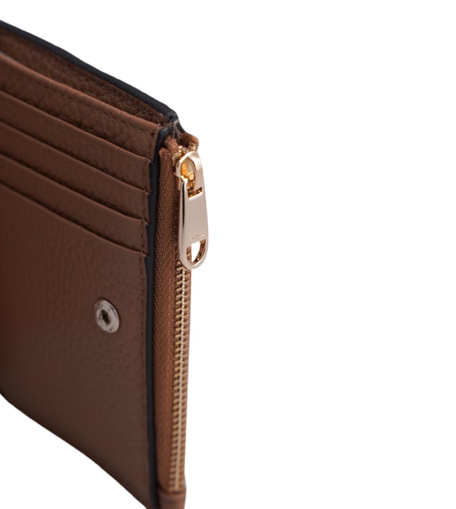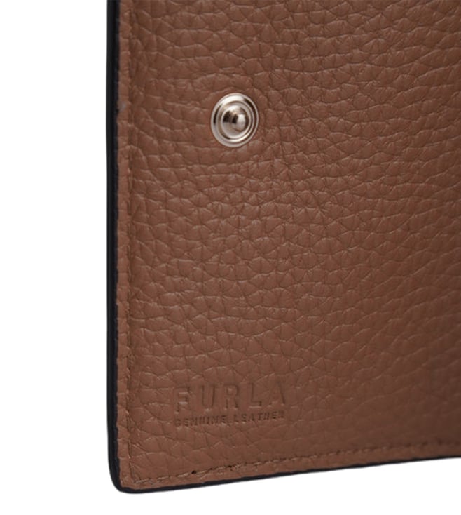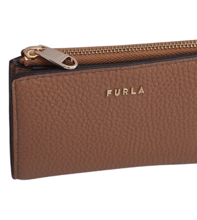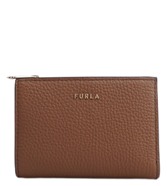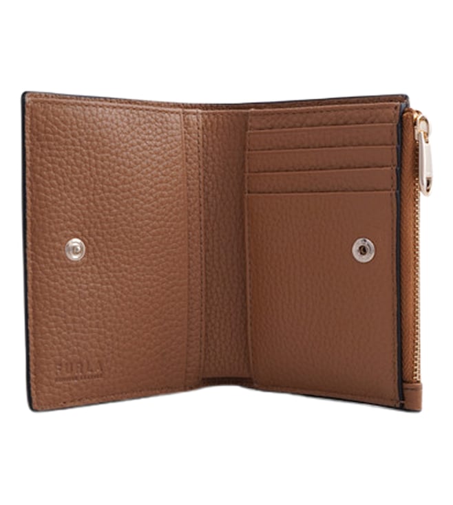 Furla Ritzy is a stylish bi-fold wallet made of grained leather. The mini galvanized Furla logo punched on the front adds a unique finishing touch. Experience the convenience of a spacious interior, one compartment stores banknotes and receipts, while the zipped coin pocket keeps loose change secure. Organize your essentials effortlessly with five credit card and ID card slots, along with two inner side pockets. Rest assured, your belongings stay protected with the convenient closure, while the galvanized light gold finishes add a hint of luxury.
