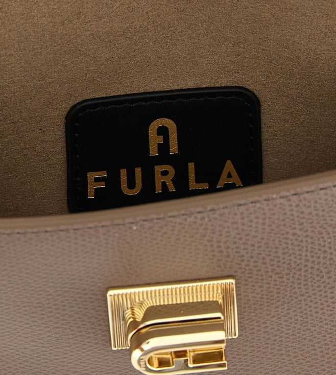 Expand the collection of your accessories in a trendy way with this bag from Furla. Grey furla 1927 mini crossbody bag in printed leather with a garnet texture, flap closure with metal turn with arco logo, chain shoulder strap. Products purchased from Darveys are supported exclusively by the warranty/exchange policies of Darveys and its partner boutiques. Brand owners and their channel partners are not responsible for exchange/warranty services for items purchased through Darveys.
