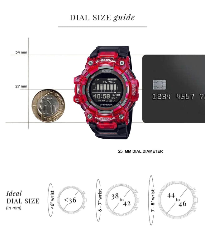 Make a distinct style statement wearing this men's digital watch from G-Shock. The black round dial is protected by a mineral glass. The resin strap comes in a black hue that further elevates the look of the timekeeper. Besides, it is completed with a buckle clasp to ensure a secure fit on the wrist.