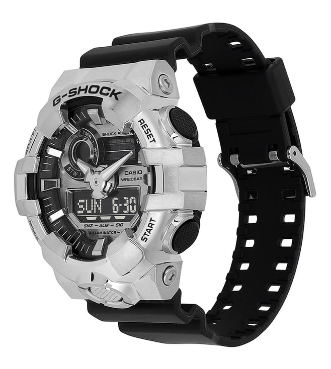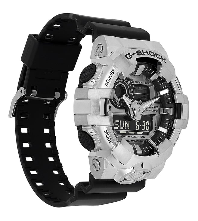 The Casio G-SHOCK GM-700-1ADR combines rugged durability with a sleek silver analog-digital dial. Featuring a strong metal bezel and the iconic G-SHOCK shock resistance, this watch is built for toughness. It offers 200-meter water resistance, world time, a stopwatch, countdown timer, and multi-function alarms. The bold design, paired with a comfortable resin band, ensures both style and reliability for any occasion. With its striking silver-tone accents and advanced functionality, the GM-700-1ADR is a perfect blend of performance and sophistication.