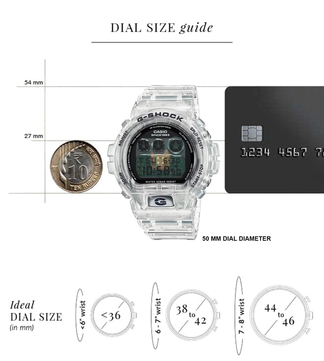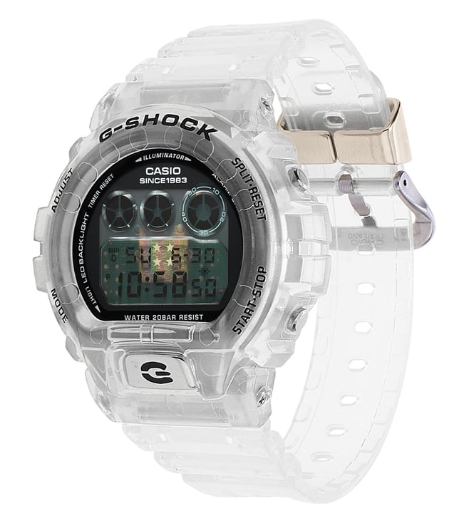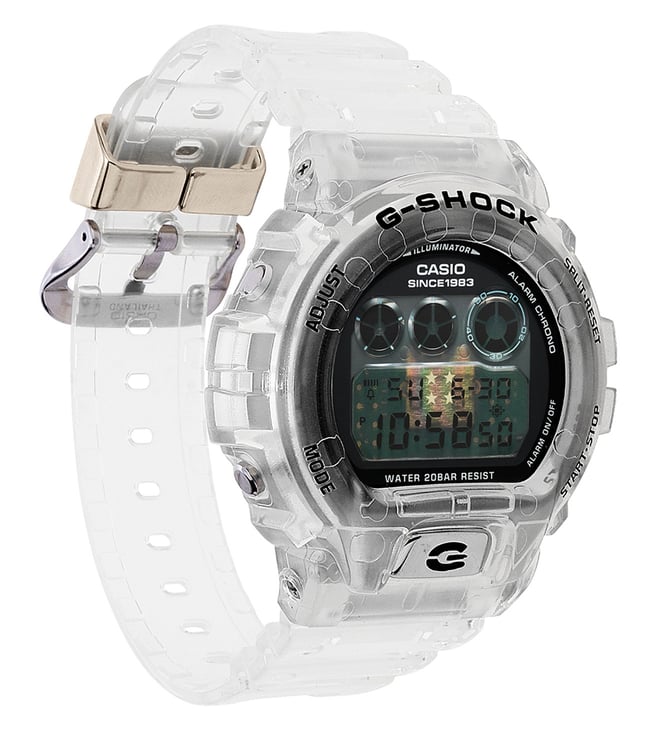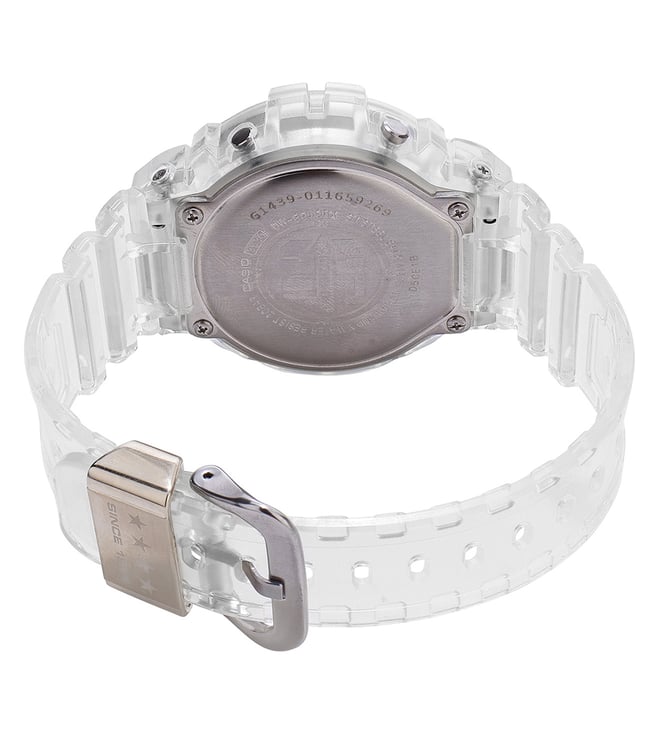 Express yourself in no uncertain terms with the G-SHOCK 40th anniversary Clear Remix lineup popular G-SHOCK designs deconstructed with see-through components for the clearest look yet.See-through materials for the band, case, dial, LCD, and buttons provide a behind-the-scenes view of the module substrate printed with the G mark and G-SHOCK logo. The case back features the Eric Haze-designed 40th logo, and the band loop is engraved with four stars in a nod to this special anniversary.