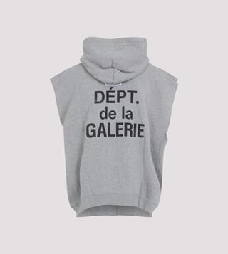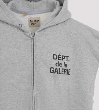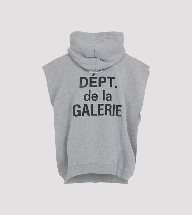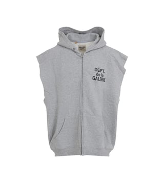 The GALLERY DEPT. Grey 90's Full Zip Cut Off Hoodie is a nostalgic nod to retro streetwear, blending vintage flair with modern edge. Crafted from soft, heathered grey fabric, it features a full zip front and raw cut-off sleeves, exuding a rebellious spirit. Perfect for layering, it embodies effortless cool.Products purchased from Darveys are supported exclusively by the warranty/exchange policies of Darveys and its partner boutiques. Brand owners and their channel partners are not responsible for exchange/warranty services for items purchased through Darveys.