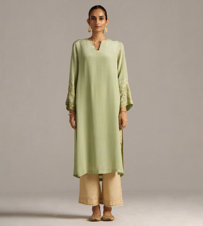 Celadon Green & Beige Bagh Crepe Silk Co-ord Set