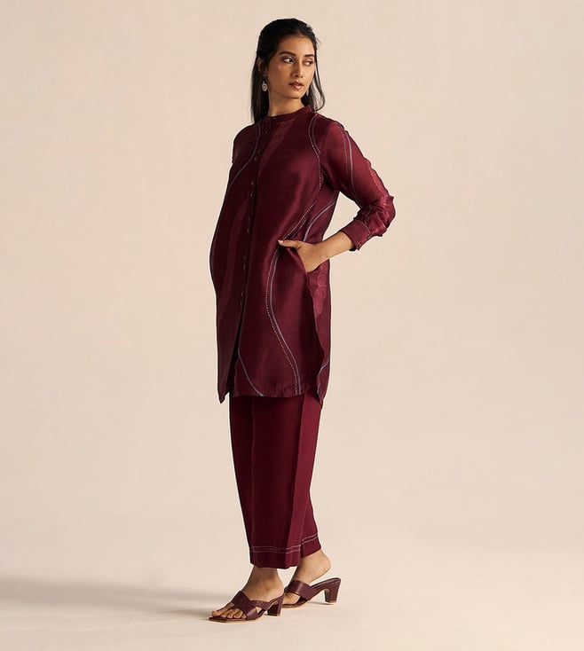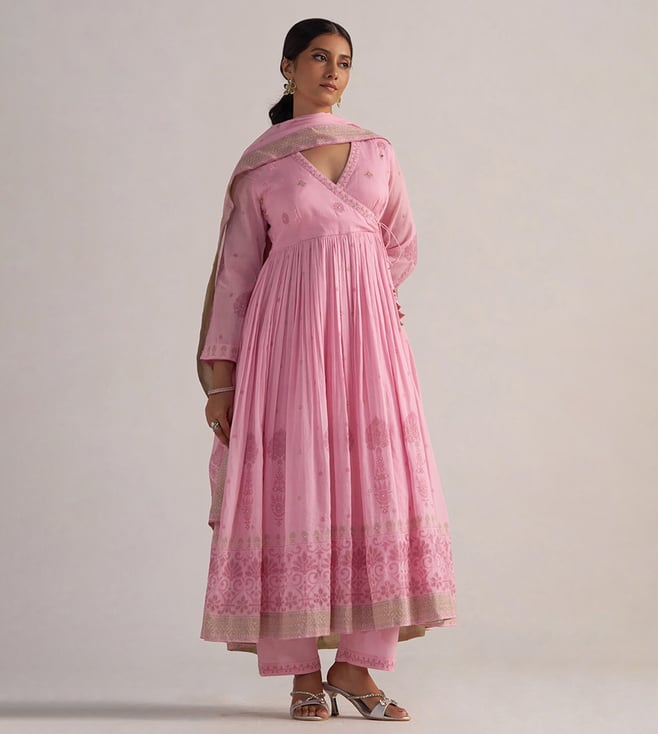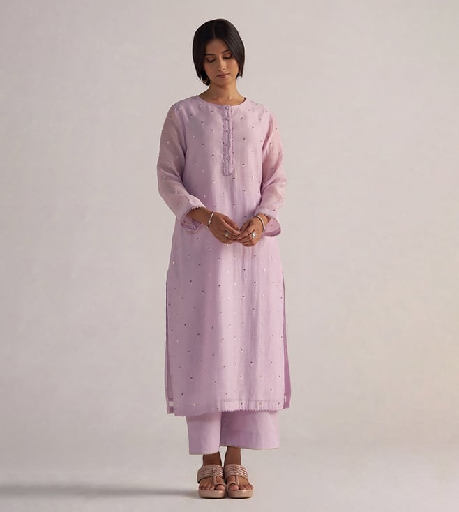Winsome Orchid Chanderi Embroidered Kurta and Pants Set