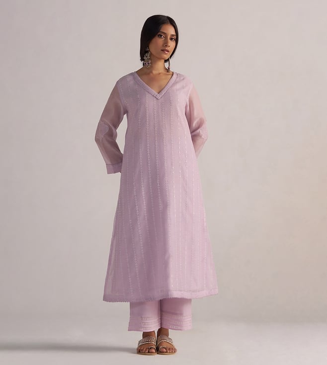 Winsome Orchid Chanderi Embroidered Kurta and Pants Set