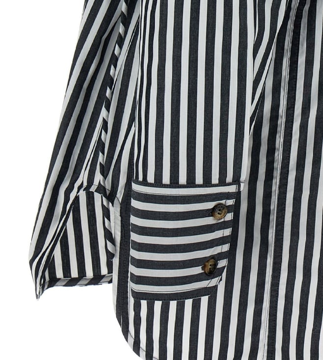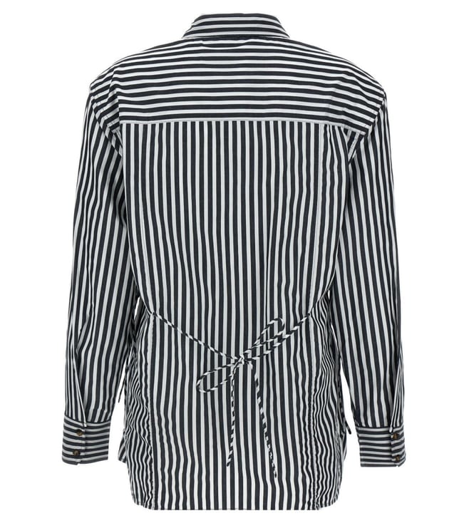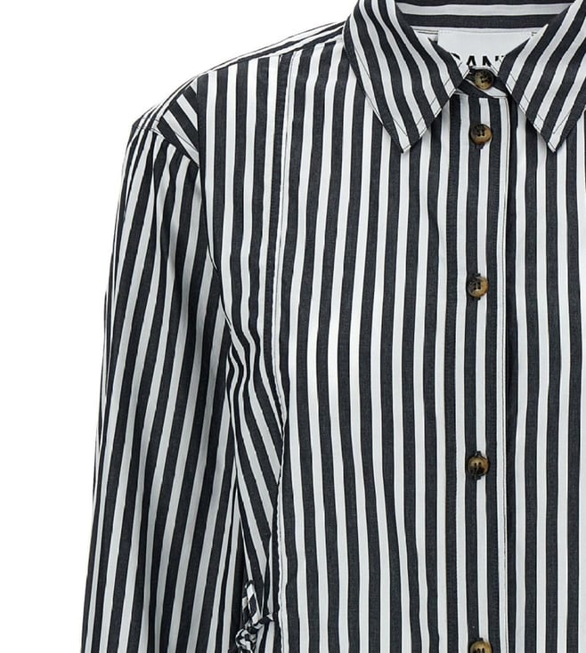 Elevate your wardrobe with this chic black casual shirt, featuring a timeless striped pattern that exudes effortless style. Crafted from 100% cotton, it promises unparalleled comfort and breathability. The long sleeves and classic shirt collar add a touch of sophistication, making it perfect for any occasion. Designed with a sleek closure, this versatile piece seamlessly transitions from day to night, offering a flattering fit for the modern woman who values both elegance and ease.